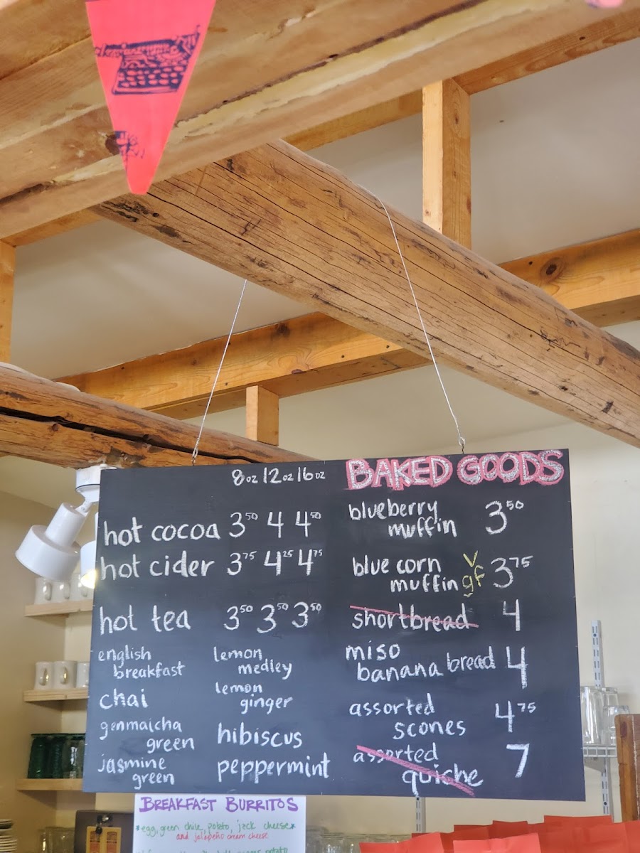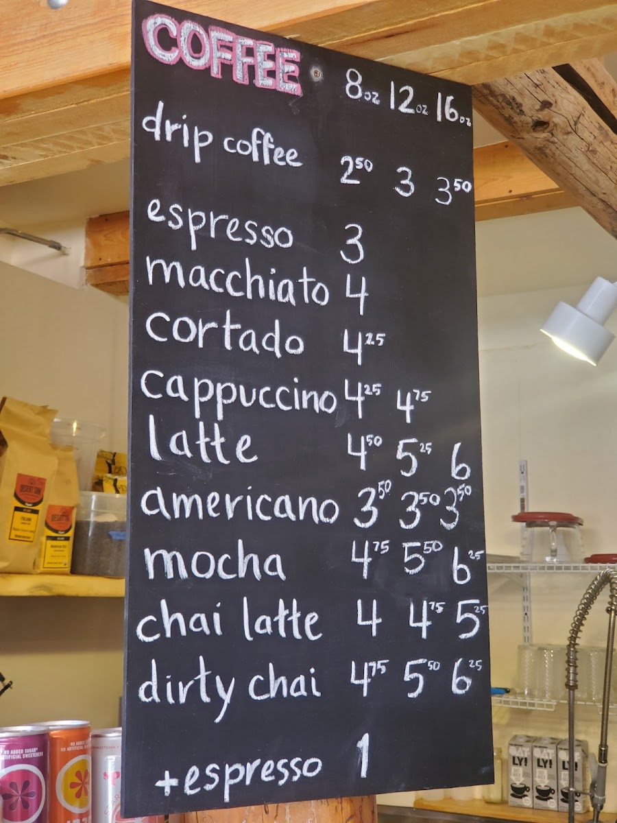 The menu suits a range of moments—whether you're settling in to enjoy the cozy indoor seating or soaking up the quiet charm of the outdoor space. Each item complements the environment's relaxed vibe, making it an ideal spot to recharge during a day of exploring or to catch up with friends in an easygoing setting.